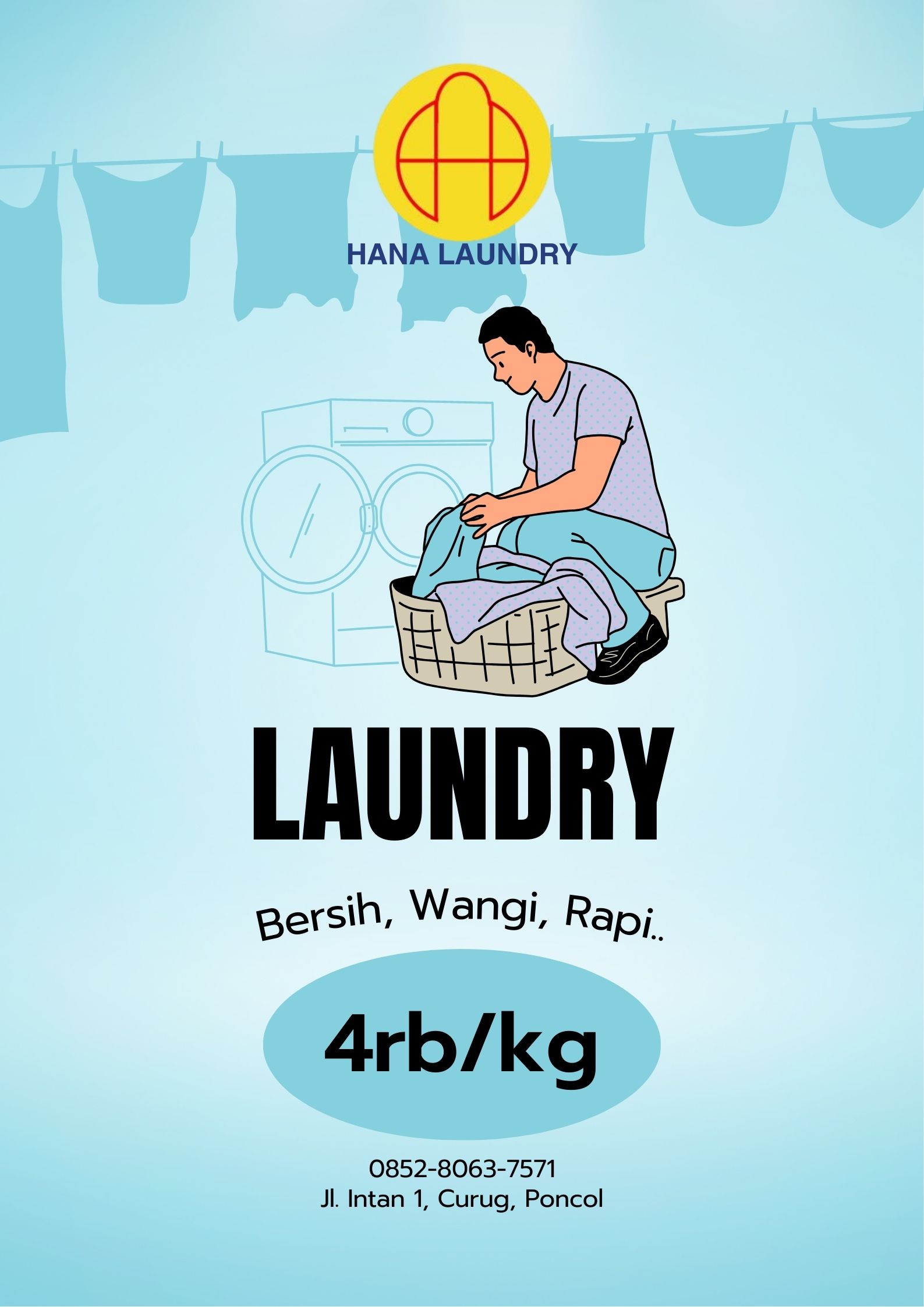 Hana Laundry hadir sebagai solusi praktis dan higienis untuk kebutuhan kebersihan Anda. Kami melayani jasa cuci pakaian harian, sprai, selimut, hingga cuci sepatu dengan proses bersih, rapi, dan wangi.